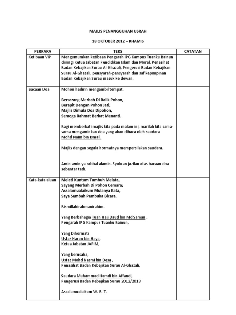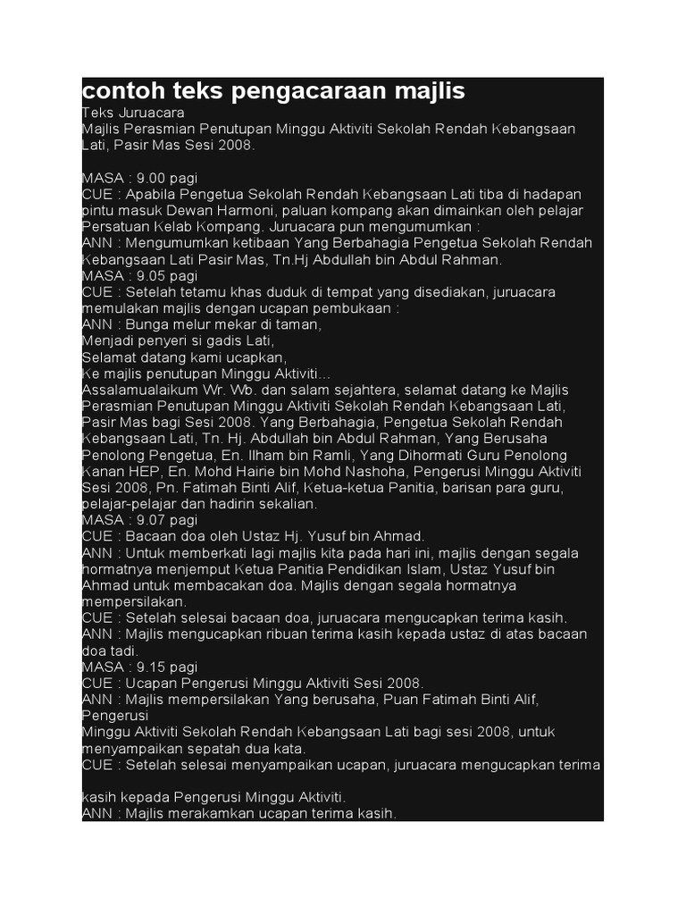 Can You Handle The Truth?: Contoh Text Pengerusi Majlis ... from 4.bp.blogspot.com Teks ucapan mc majlis penyampaian bantuan awal persekolahan skmd. You can publish your book online for free in a few minutes! Tuan haji mohd nasarruddin bin ahmad. Teks mc jamuan akhir tahun perpisahan. Teks pengacara majlis perkahwinan muhammad syakir bin roslan dan nurul najwa bt hj mohd nazri pada 18 februari 2018 di teratak ibunda ( kompang dimainkan) anak cina memasang lukah lukah dipasang di tanjung selasih. Bersyukur kita ke hadrat illahi kerana kita dapat berkumpul dan berhimpun di pagi yang mulia ini sempena majlis persaraan cik lim yee ming selaku guru penolong kanan. So selamat meng 'copy & paste' ye !!!! Diucapkan ribuan terima kasih atas ilmu tuan.