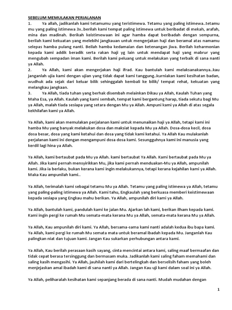 Biasakan Ucapkan Fii Amanillah Nasihat Sahabat from nasihatsahabat.com Ya allah, sihatkanlah tubuh kami (daripada penyakit yang tidak kami inginkan) ya allah, sihatkanlah pendengaran kami (daripada perkara yang buruk dan tidak bermanfaat) Dalam hal doa hari arafah, rasulullah saw pernah mengajarkan doa arafah kepada ahabat. For more information and source,. Malah esok, kita juga disunatkan berpuasa sunat yang disebut juga puasa sunat arafah. Berikut adalah beberapa doa yang anda boleh masukkan dalam senarai anda, insya allah: Doa ialah rayuan kepada allah (tuhan) untuk penganut islam.caranya adalah dengan meletak tangan di hadapan dan menghadap kedua tapak tangan ke atas. More images for doa arafah dalam bahasa melayu » Oct 14, 2013 · doa arafah bukan sahaja baik dibaca oleh jemaah haji pada hari arafah, tetapi disunnahkan juga kepada seluruh umat muslim di seluruh dunia walaupun tidak berada di padang arafah.